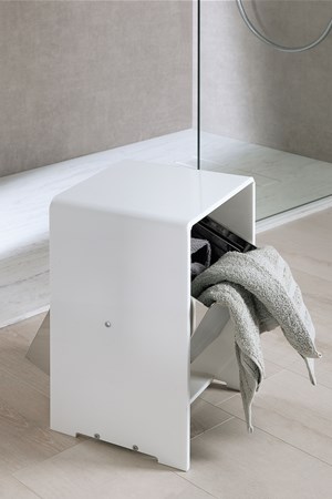 Sgabello plexiglass con getta rifiuti inox 304