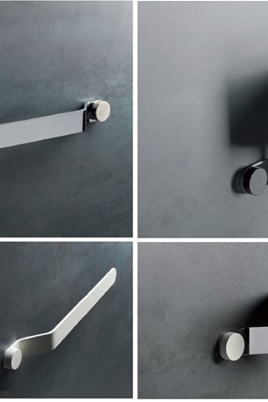 Nella collezione sono disponibili tutti gli elementi necessari per regalare spazi dedicati al benessere ed alla cura del corpo perfettamente funzionali: dalla mensola in vetro alle aste porta asciugamani, dal porta scopino a parete al modello da appoggio in elegante ceramica. Il porta sapone, il dispenser per sapone liquido ed il portabicchiere a parete si propongono nelle loro eleganti versioni per andare ad ospitare a parete tutti gli