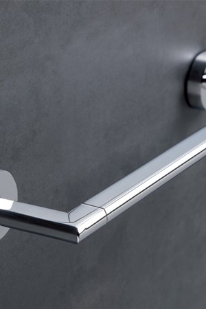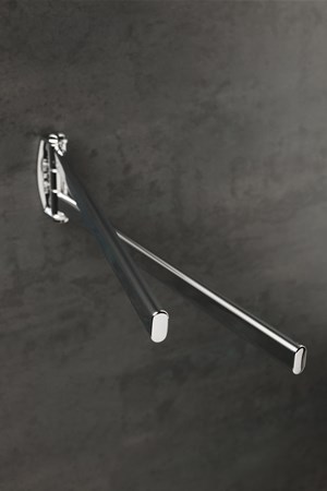 Per ambienti di piccole dimensioni è possibile scegliere la soluzione salvaspazio di un porta asciugamani snodo a due aste, che potrà essere fissato a parete con il sistema ad incollo senza andare a praticare alcun foro nella parete.