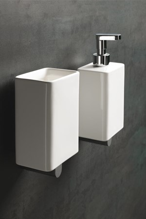 Le basi in ottone cromato sembrano pensate proprio per ospitare i delicati elementi in ceramica, creando così un mix tra lucentezza del metallo e delicato candore della ceramica che si esaltano vicendevolmente. Il bagno moderno si trasforma così in uno spazio assolutamente piacevole da vivere, dove ogni oggetto trova la sua perfetta collocazione e permette di avere sempre tutto l'occorrente a portata di mano, e che al tempo stesso non rinuncia mai ad un look elegante ed esclusivo.